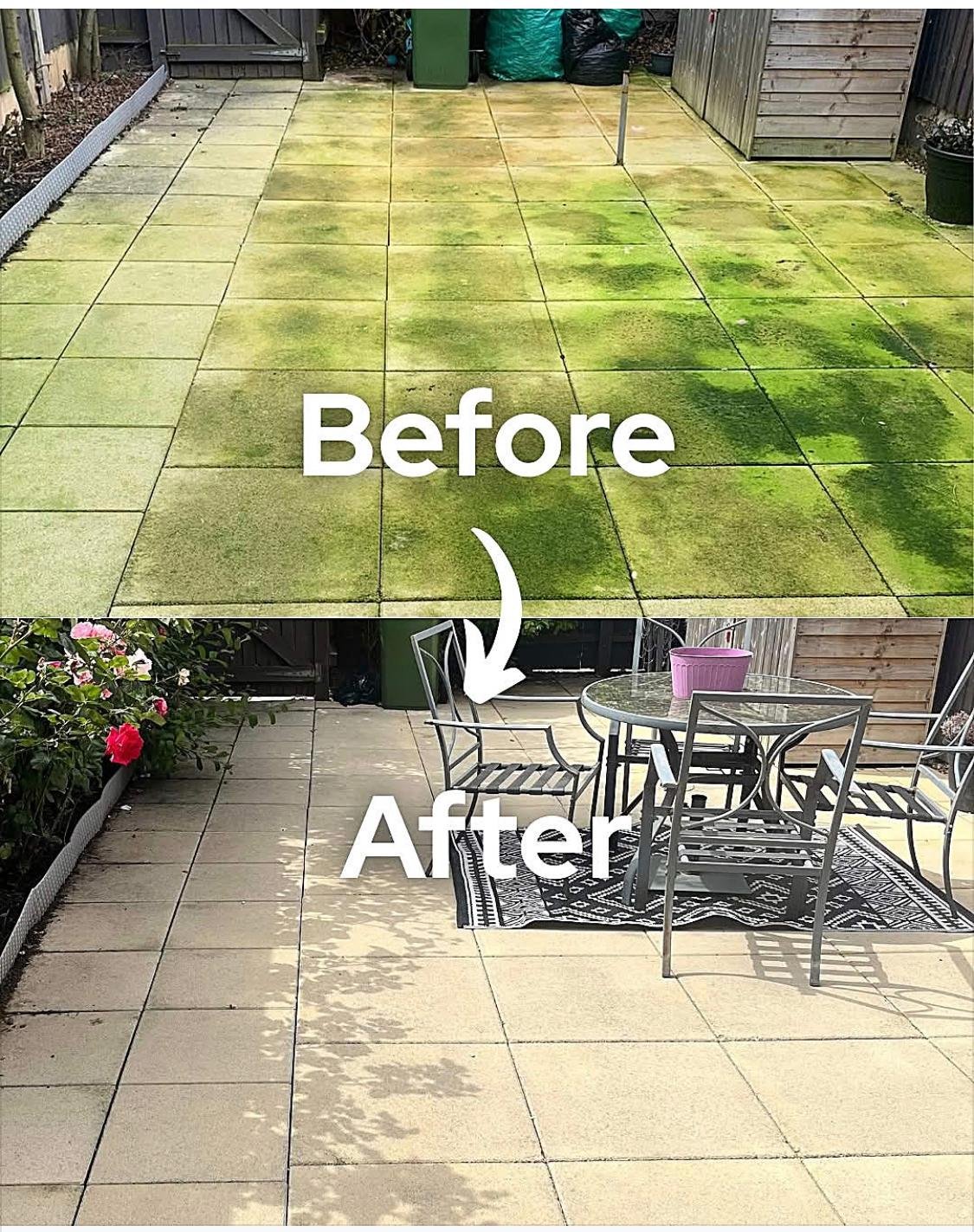 Patios often suffer from embedded dirt, algae, black spot lichen and organic staining. Our deep cleaning process ensures long-lasting results.